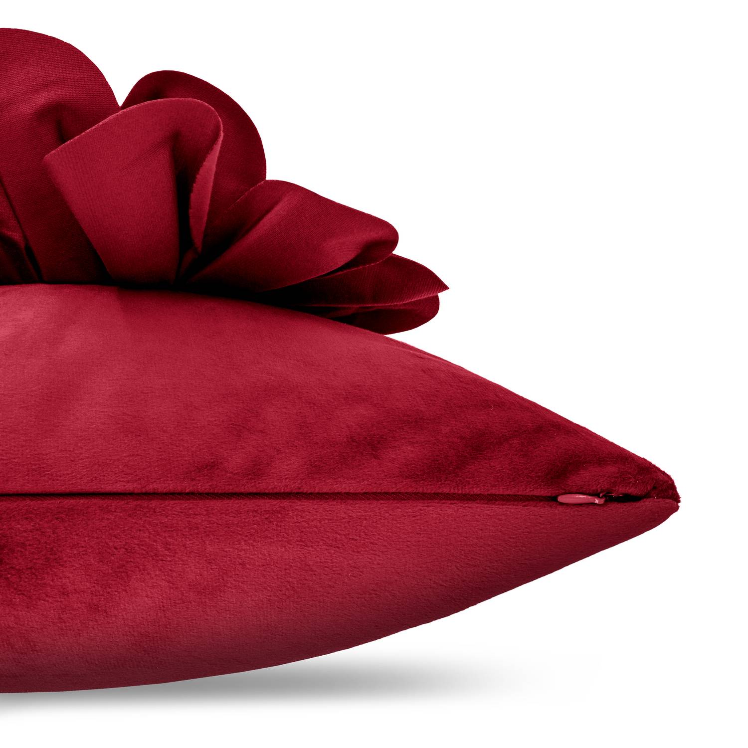 Poszewka dekoracyjna FOREVER YOURS Kwiat 3D 42x42 cm Czerwony – velvet, ozdobna poszewka z kwiatem 3D, idealny prezent, Domarex