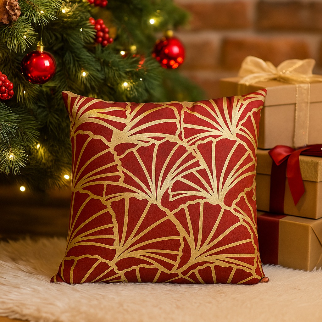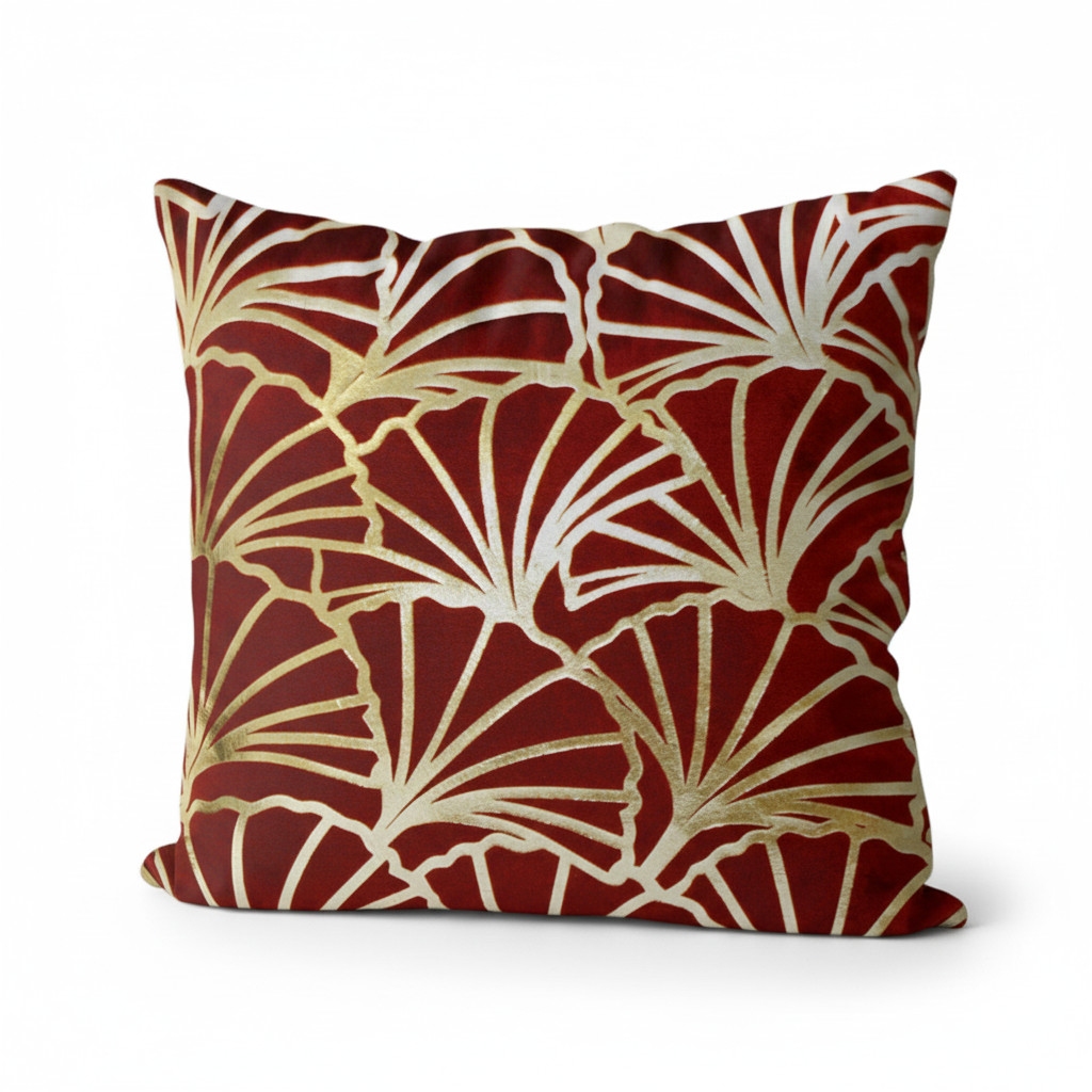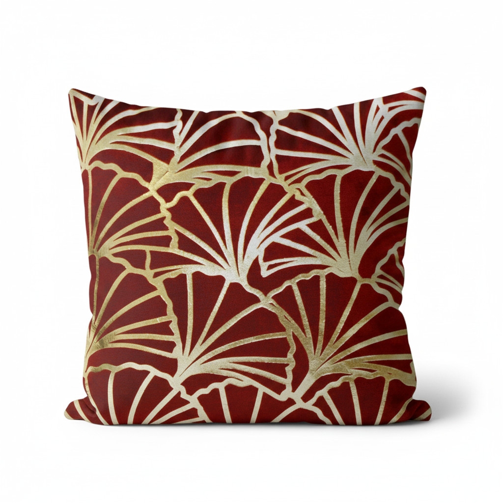 Poszewka Velvet GINKGO GOLD Bordo 40x40 cm – Kolekcja Gold Deco