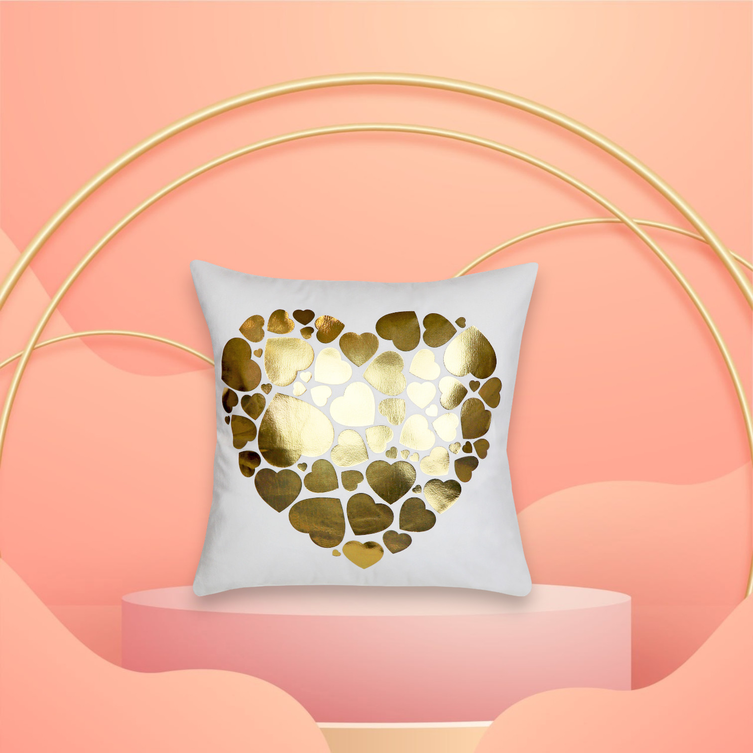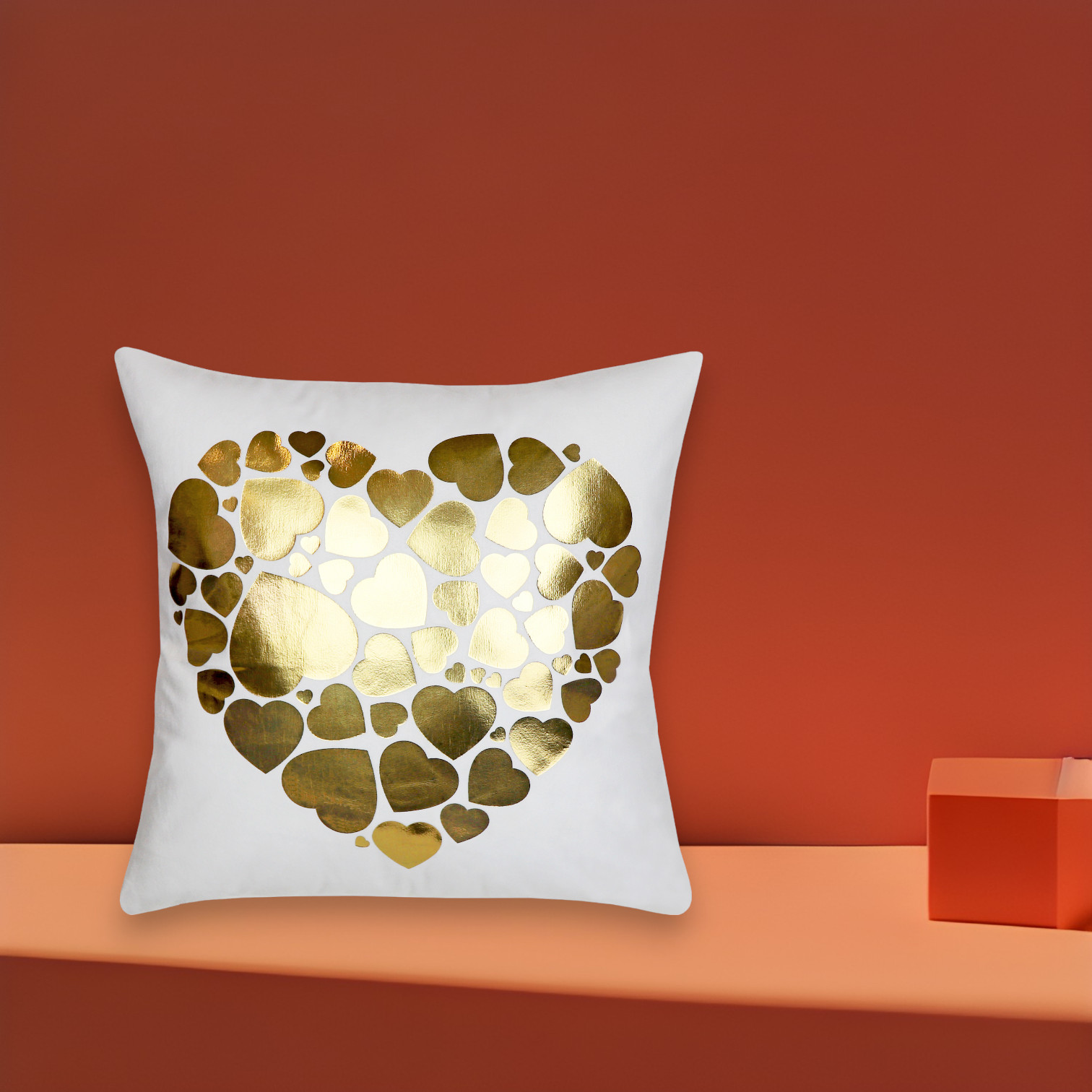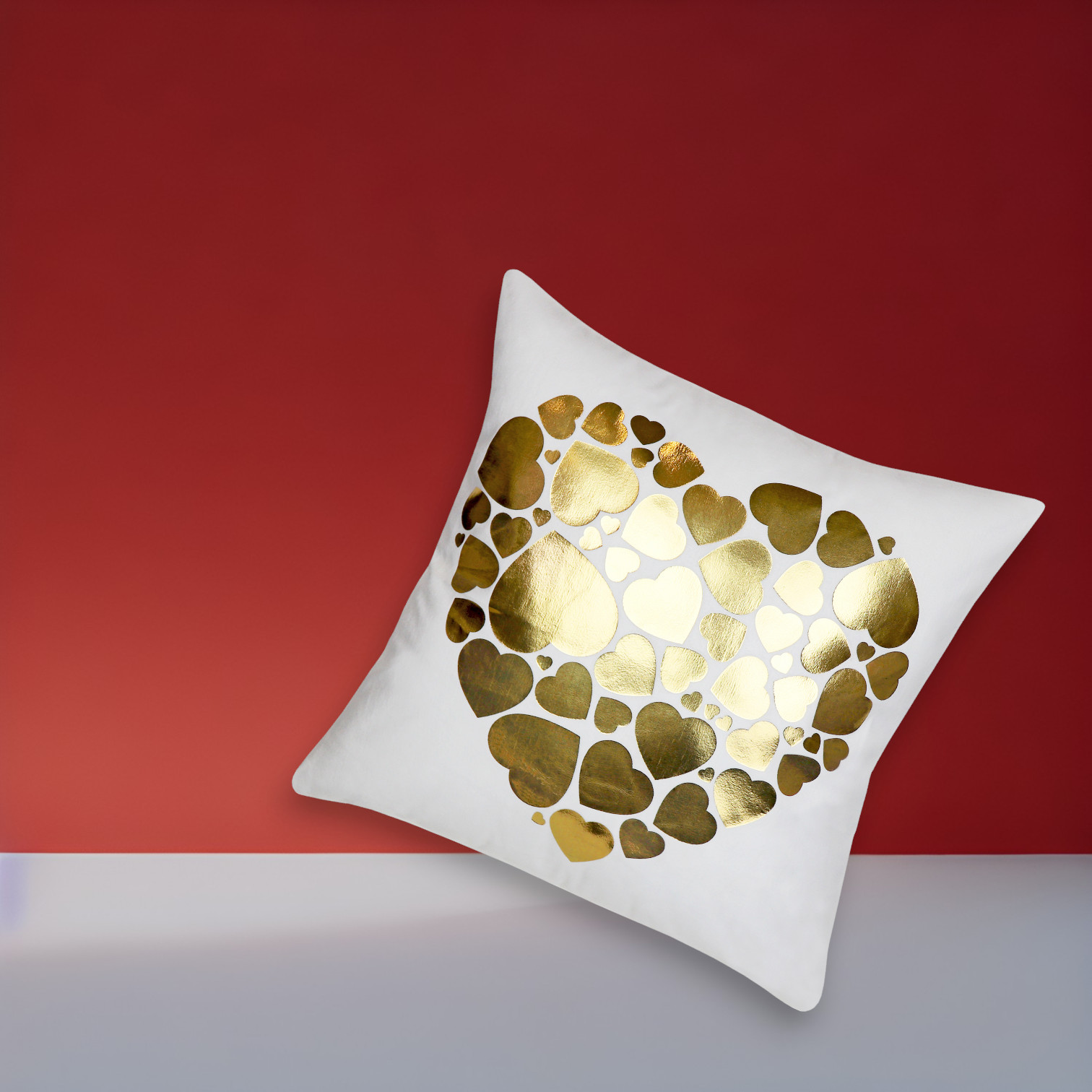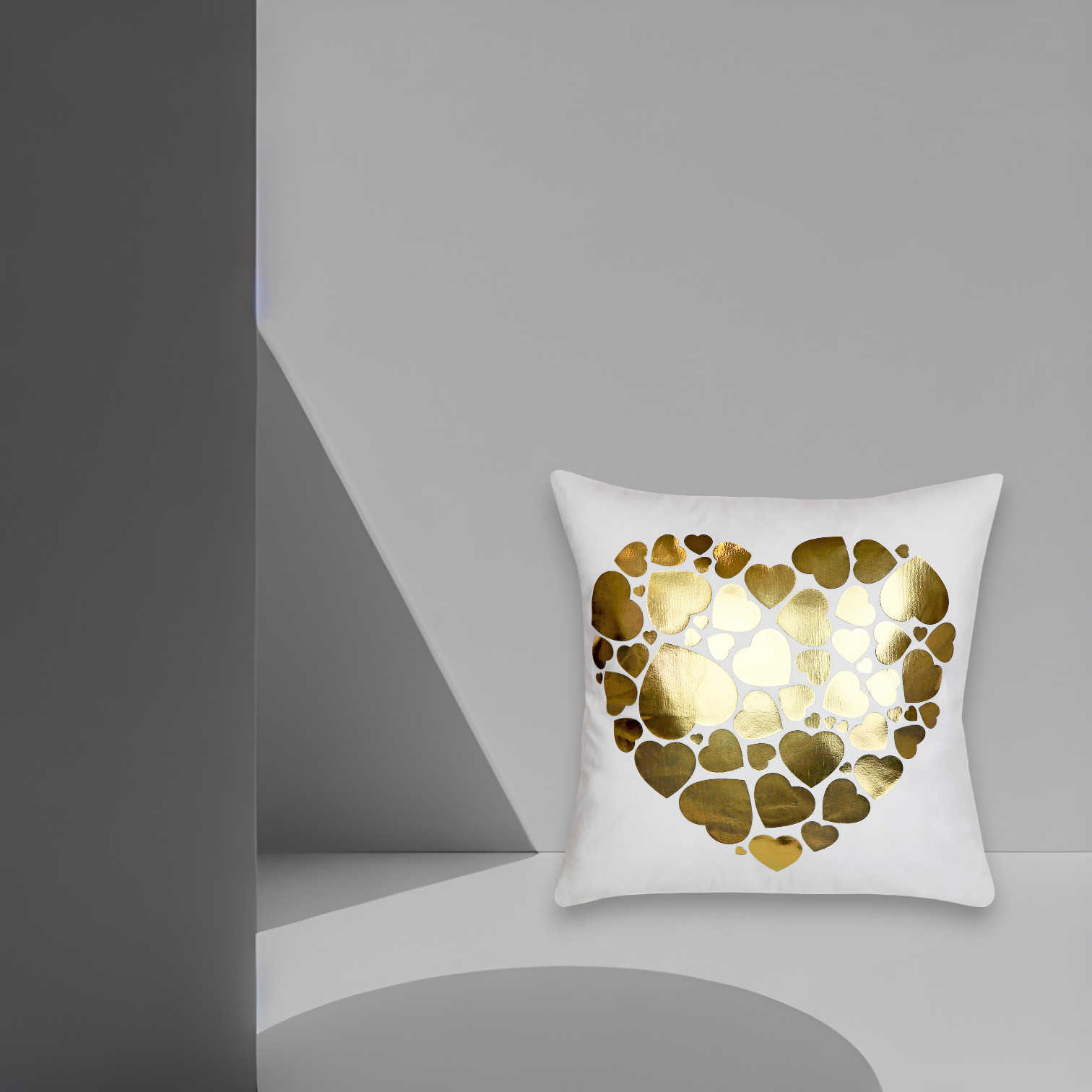 Poszewka Gold Love velvet HEARTS 40x40 biały złoty