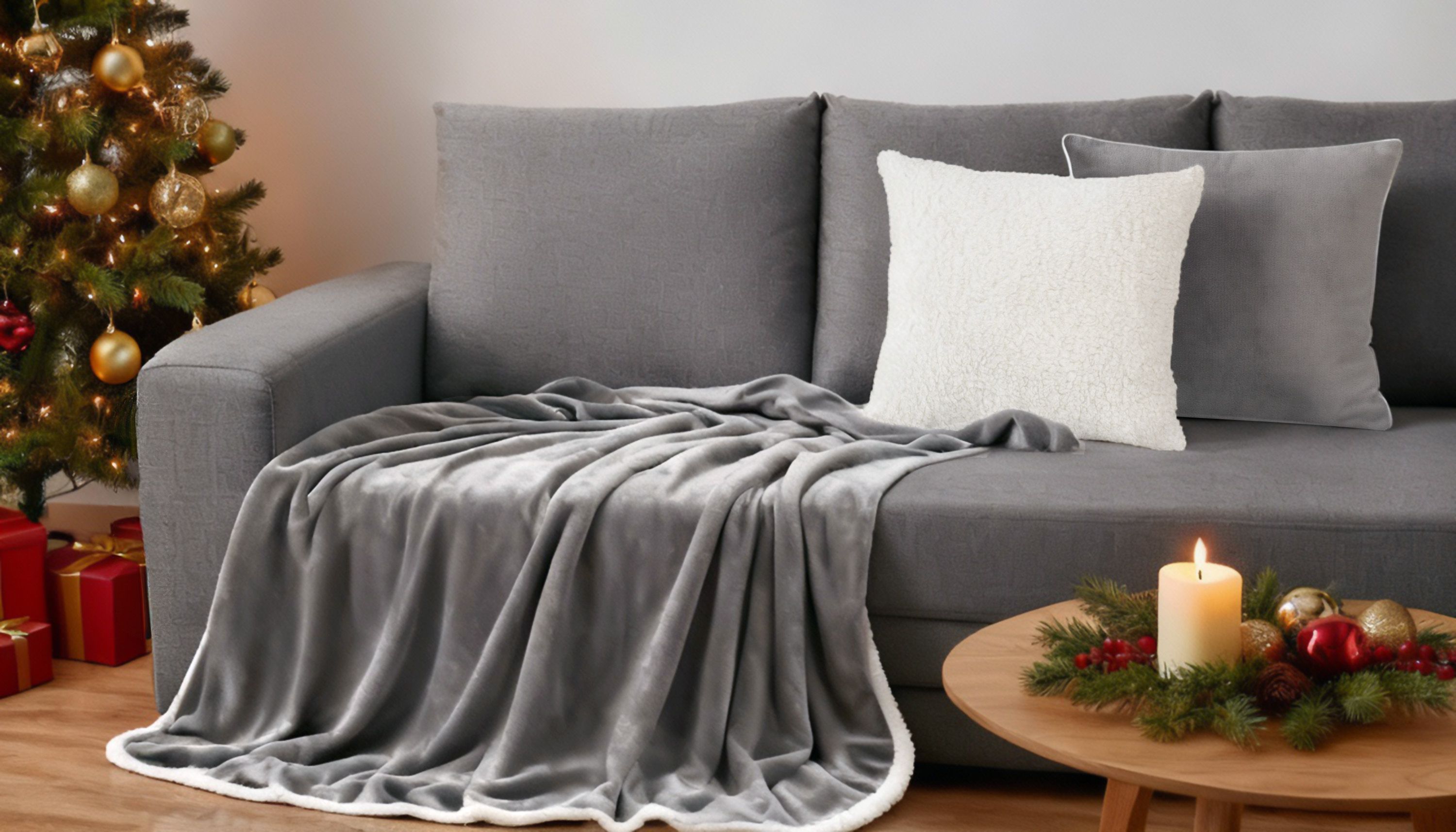 Komplet z kocem: kolorystyka i faktury dopasowane do koca Marlborough – szary.
