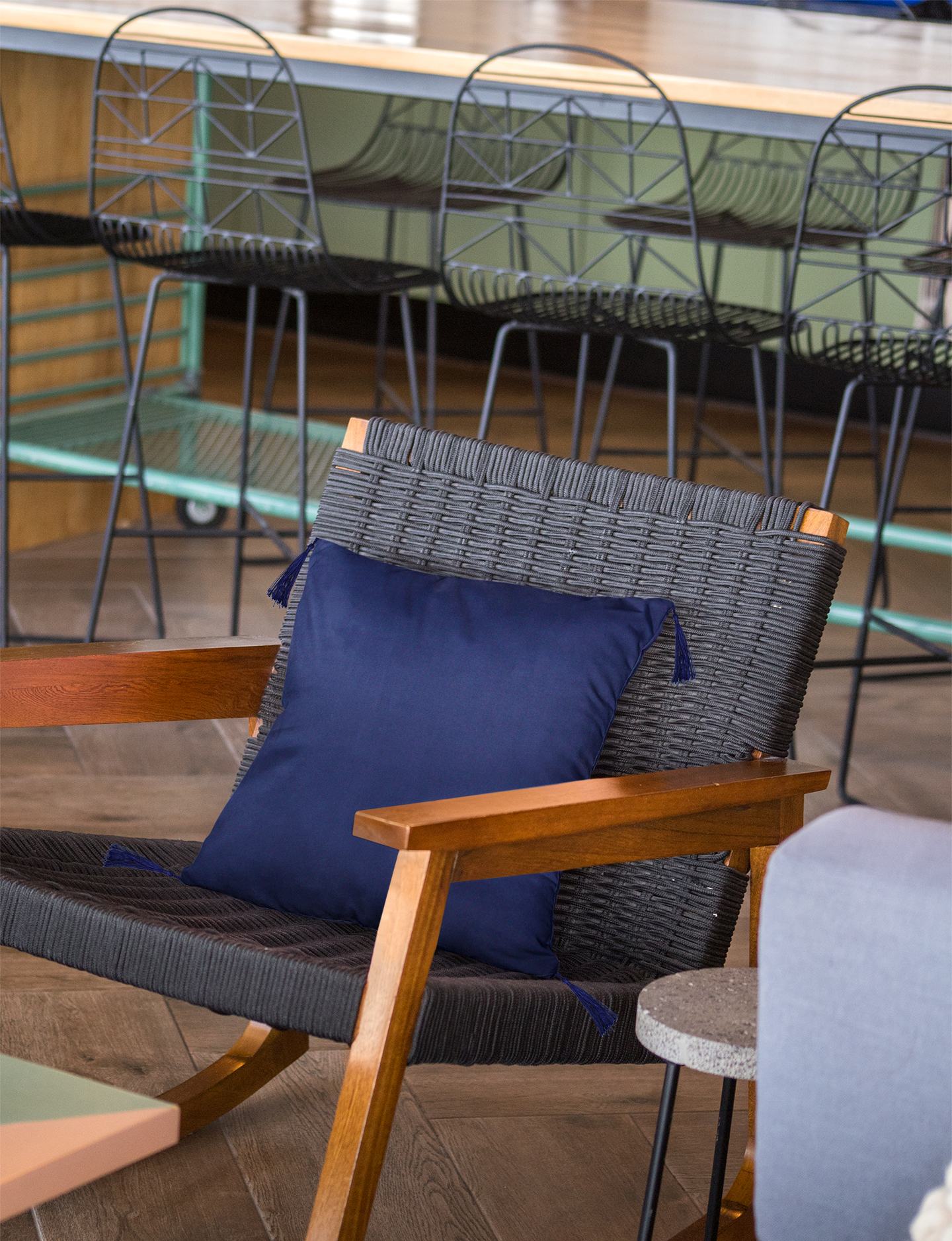 Poszewka dekoracyjna wykonana z weluru z chwostami wykonana z designerskiego Velvetu. Na narożnikach poduszki znajdują się dekoracyjne chwosty.